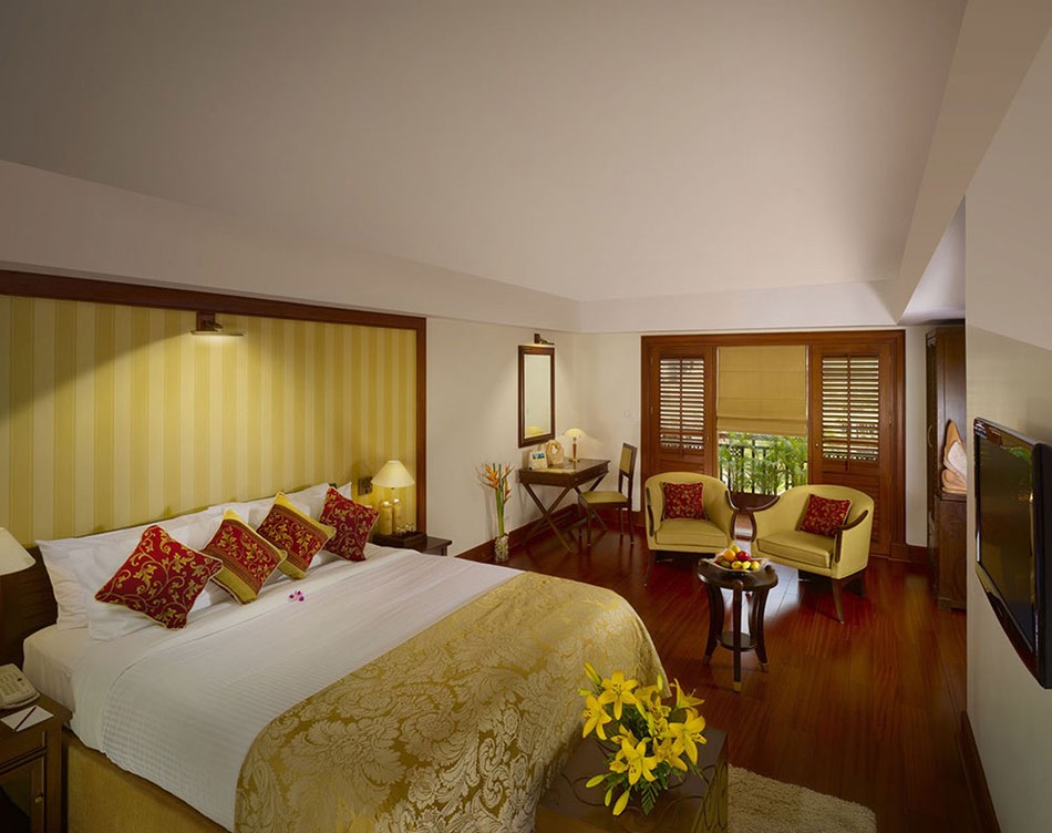 The rooms, villas and suites at Kumarakom Lake Resort are a perfect blend of Kerala's traditional architectural charm with luxurious, modern comforts. Each is a careful reconstruction of manas, the 16th century traditional homesteads of Kerala, with many such manas having been transplanted from their original locations and reassembled painstakingly by hand, plank by plank, tile by tile, to create the luxurious abodes at Kumarakom Lake Resort. The traditionally styled, luxuriously modern, open-roofed bathrooms set in small, luxury houseboats, aesthetically designed courtyards are a common feature to the villas and suites.